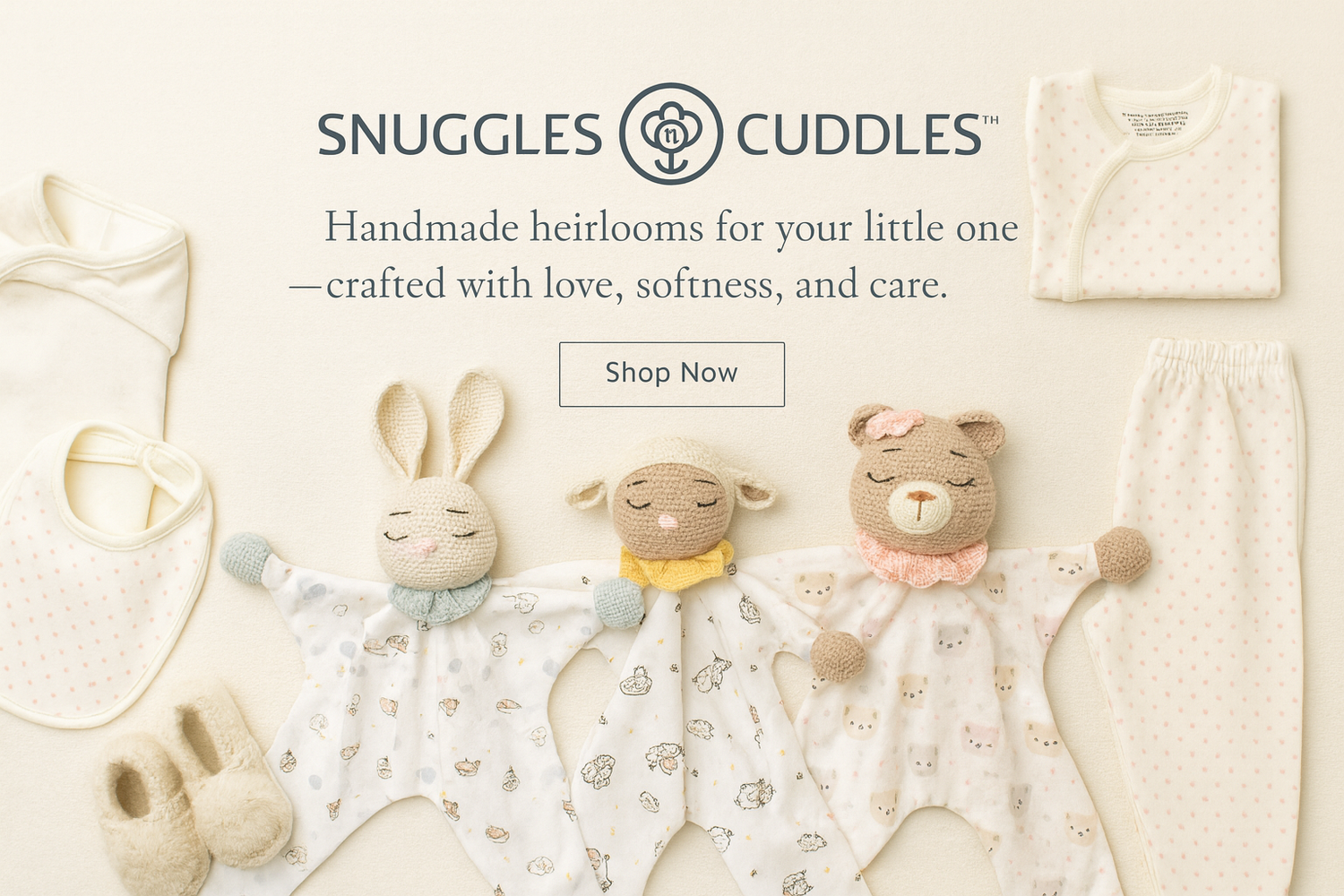 Bring comfort, calm, and connection to your little one’s world with our Snuggle Companions Collection — a curated selection of handmade loveys, plush toys, and soothing essentials designed for cozy moments and peaceful sleep.
