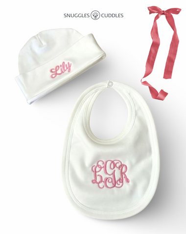 Take baby home in this sweet baby blue footie set that comes complete with a matching hat and bib. Made from 100% Pima cotton for a soft and comfortable fit.