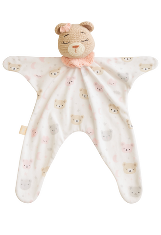 Meet our Handmade Teddy Lovey, a timeless keepsake designed to bring warmth and comfort to your baby’s world. Each lovey features a hand-crocheted teddy head made from soft, natural cotton yarn and a lightweight cotton body printed with a delicate baby animal pattern.