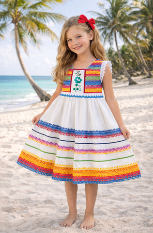 Bright, joyful, and made for sunny adventures—our Los Cabos Fiesta Dress brings vibrant color and handcrafted charm to little ones’ wardrobes. Featuring beautifully detailed embroidery and playful orange accents, this breezy dress is perfect for warm days, celebrations, and twirl-worthy moments. Designed for comfort and made to stand out, it’s a fiesta in dress form.